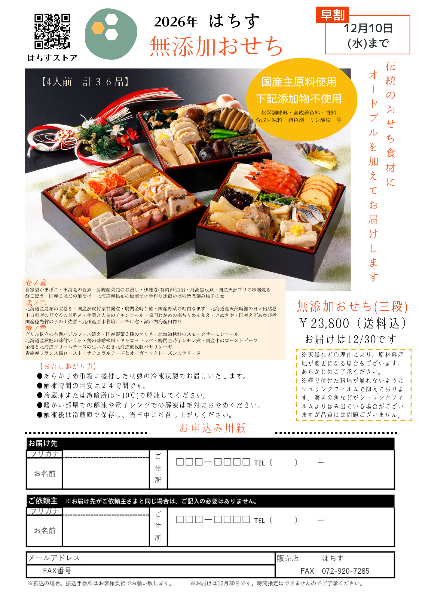 【お召しあがり方】●あらかじめ重箱に盛付した状態の冷凍状態でお届けいたします。●解凍時間の目安は24時間です。●冷蔵庫または冷暗所(5~10℃)で解凍してください。●暖かい部屋での解凍や電子レンジでの解凍は絶対におやめください。●解凍後は冷蔵庫で保存し、当日中にお召し上がりください。